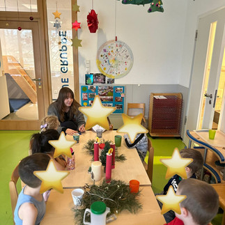 Es wurde fröhlich gesungen und mit Rasseln musiziert. Außerdem entstanden zahlreiche bunte Kunstwerke beim Ausmalen. Selma zeigte zwei weihnachtliche Filme im Maxiraum 🍿, und kreativ wurde es beim Basteln von funkelnden Teelichtgläsern, die gemeinsam mit Sarah gestaltet wurden. 🕯️