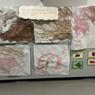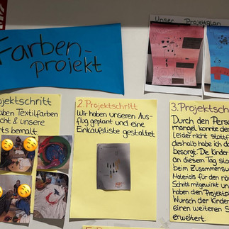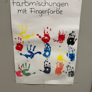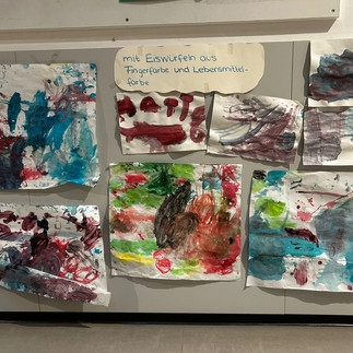 Die Kinder der grünen Gruppe sind im Rahmen eines Projektes zum Thema Farben auf bunte Entdeckungsreise gegangen und haben auf spielerische Weise die Welt der Farben kennengelernt. Es wurden T-shirts bunt bemalt, verschiedene Farben eingefroren, und die Kinder haben selbst Fingerfarbe hergestellt. Dabei sind viele bunte Kunstwerke entstanden, die von den Kindern, welche am Projekt teilgenommen haben, ausgestellt wurden.