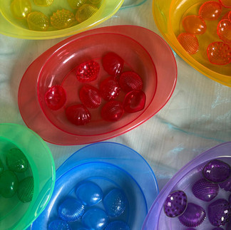Zum Einstieg haben wir Bilderbücher zum Thema Strand und Meer betrachtet. Besonders beliebt war ein großes Strand-Wimmelbild, auf dem es unzählige Details zu entdecken gab. So entstanden erste Erzählanlässe, ganz natürlich aus dem Gespräch heraus. Ein zentrales Material in dieser Zeit waren Spielmuscheln. Gemeinsam haben wir die Muscheln nach Farben sortiert, Muster gelegt, gezählt und sie miteinander verglichen. Dabei kamen viele neue Begriffe ins Spiel: rund, glatt, gerippt, glänzend, groß, klein, gleich, unterschiedlich.