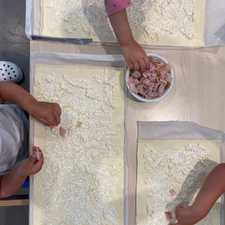 Am Mittwoch haben die Kinder der Sonnengruppe gemeinsam mit Anna leckere Blätterteigschnecken gebacken. Gemeinsam haben sie den Blätterteig mit Schmand bestrichen, Putenbrust klein geschnitten und darauf verteilt, dann Käse darüber verteilt und zum Schluss das ganze zu einer Rolle gerollt. Im Anschluss daran wurde die Rolle in einzelne Scheiben geschnitten. So entstanden sehr leckere Blätterteigschnecken, die von den Kindern nach dem Schlafen vernascht werden durften.