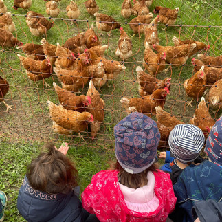 Passend zum Wort der Woche liefen die Kinder der blauen Gruppe zum Hühnermobil vom Eierbauern Klaus. Dort konnten wir die glücklichen Hühner auf der grünen Wiese beobachten. 👀